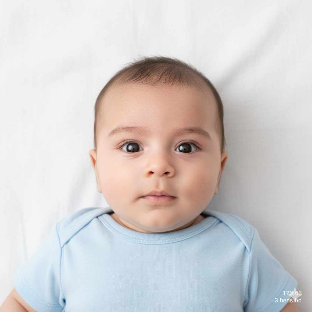 Eyes Open: The child should be looking at the camera with their eyes open (as much as possible for an infant).