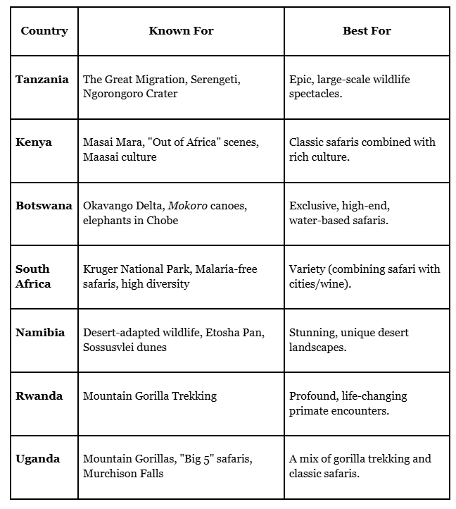 But "Africa" is a vast continent, and choosing where to go for this trip of a lifetime can be overwhelming. Each country offers a unique tapestry of landscapes, wildlife, and experiences. This guide is here to help you navigate those choices.